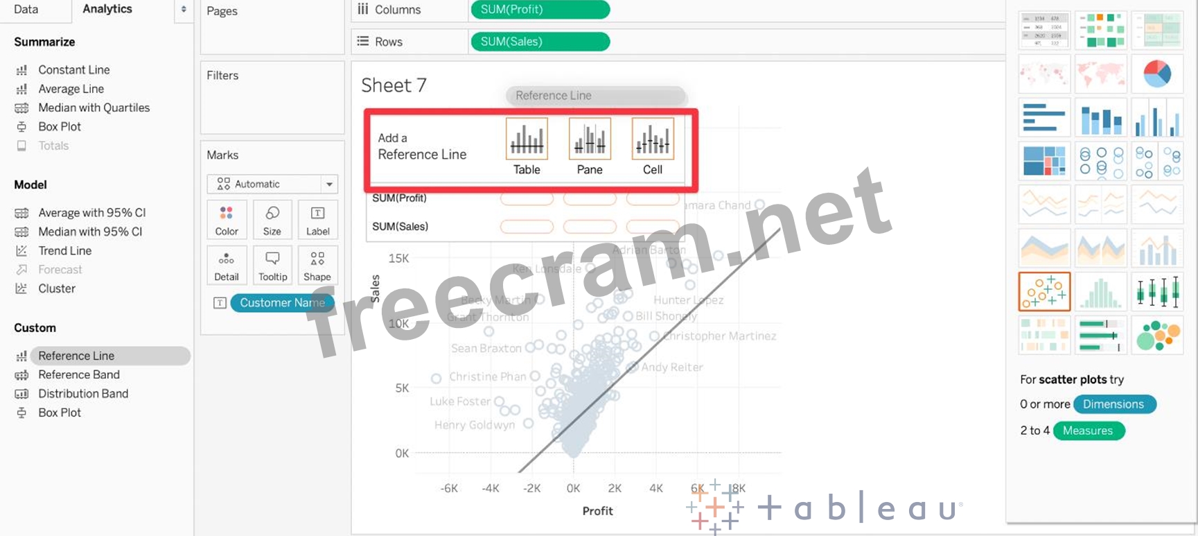 Question 2: Which two analytics options are available for a scatter plot...