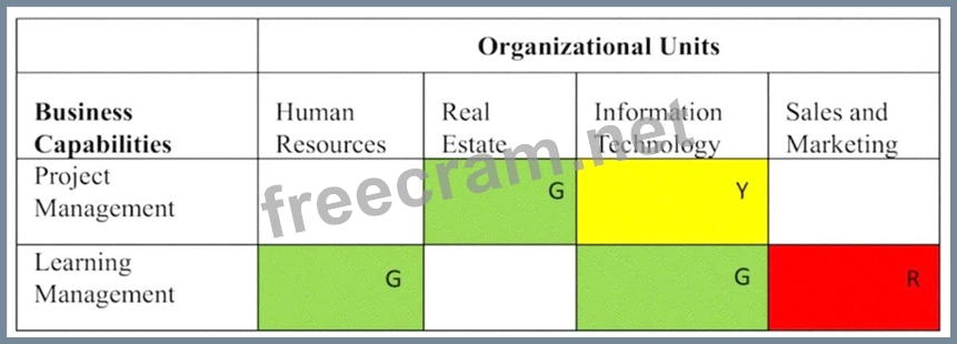 Consider the following modeling example, relating business capabilities to organization units so as to highlight duplication and redundancy: (Note in this example the cells colored green, yellow, and red, are also marked G. Y, and R, respectively) Which of the following best describes this technique?