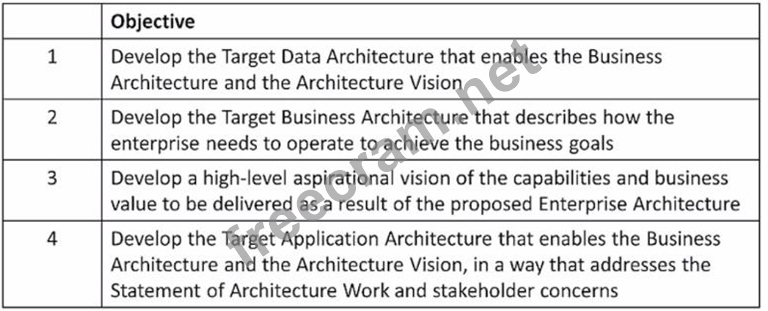 The objectives in the table are related to the development of target architectures and the architecture vision, which are the outputs of the following ADM phases: