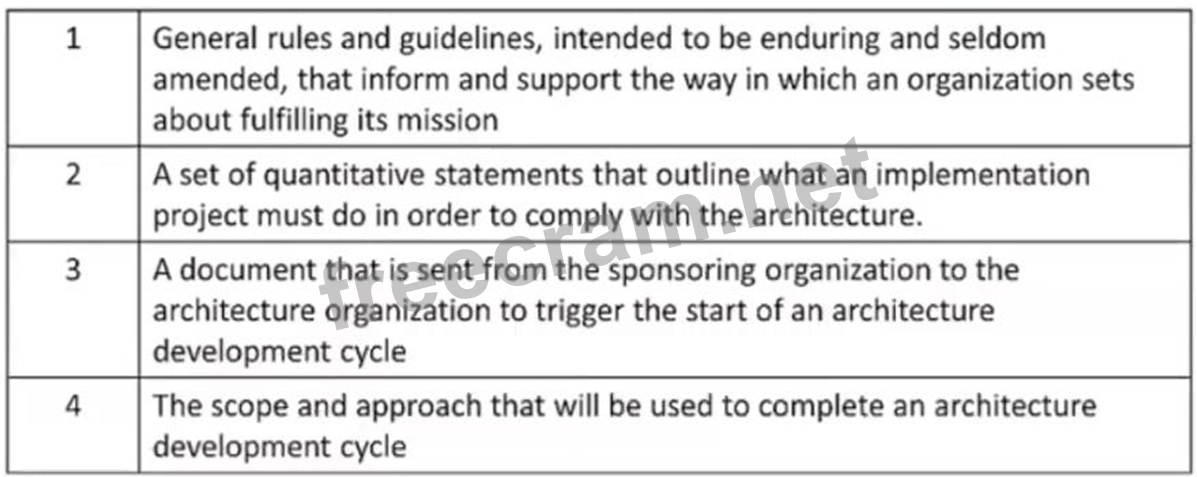 Question 32: Which section of the TOGAF template for Architecture Princip...
