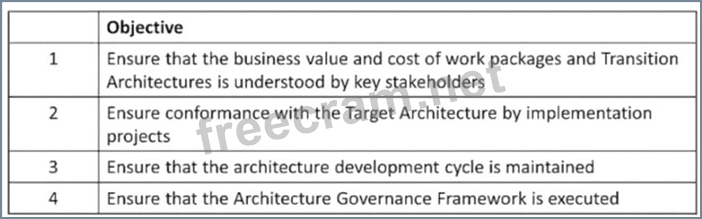 Objective 3: Ensure that the architecture development cycle is maintained. This objective is achieved in Phase F: Migration Planning, where the architecture roadmap and iteration cycle are maintained3.