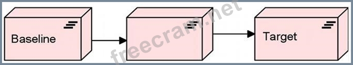 Consider the following diagram, which represents a migration from a Baseline to a Target Architecture: