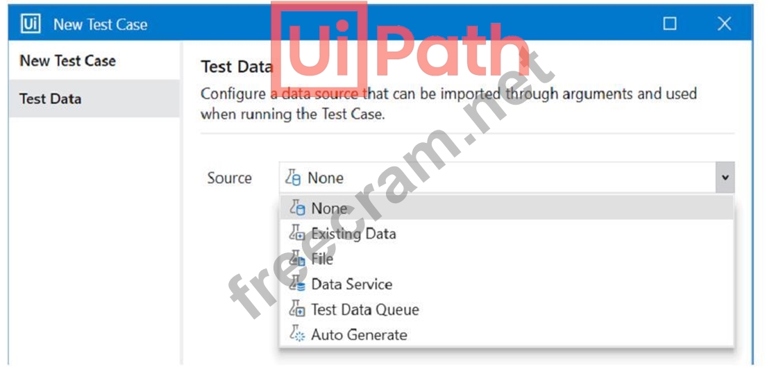When creating a new test case in UiPath Orchestrator, you can choose a source for the test data that can be imported through arguments and used when running the test case1. The source can be one of the following options: None, Existing Data, File, Data Service, or Test Data Queue2. The option that restricts dynamic data update once the test case is published is File. This option allows you to upload a file (such as Excel or JSON) that contains the test data2. However, once the file is uploaded, you cannot modify or replace it without republishing the test case3. Therefore, the test data is static and cannot be updated dynamically. The other options allow dynamic data update in different ways. For example, Data Service allows you to use an existing table from Data Service as the test data source and filter it by using a SQL query2. You can update the table in Data Service and the changes will be reflected in the test case without republishing it4.