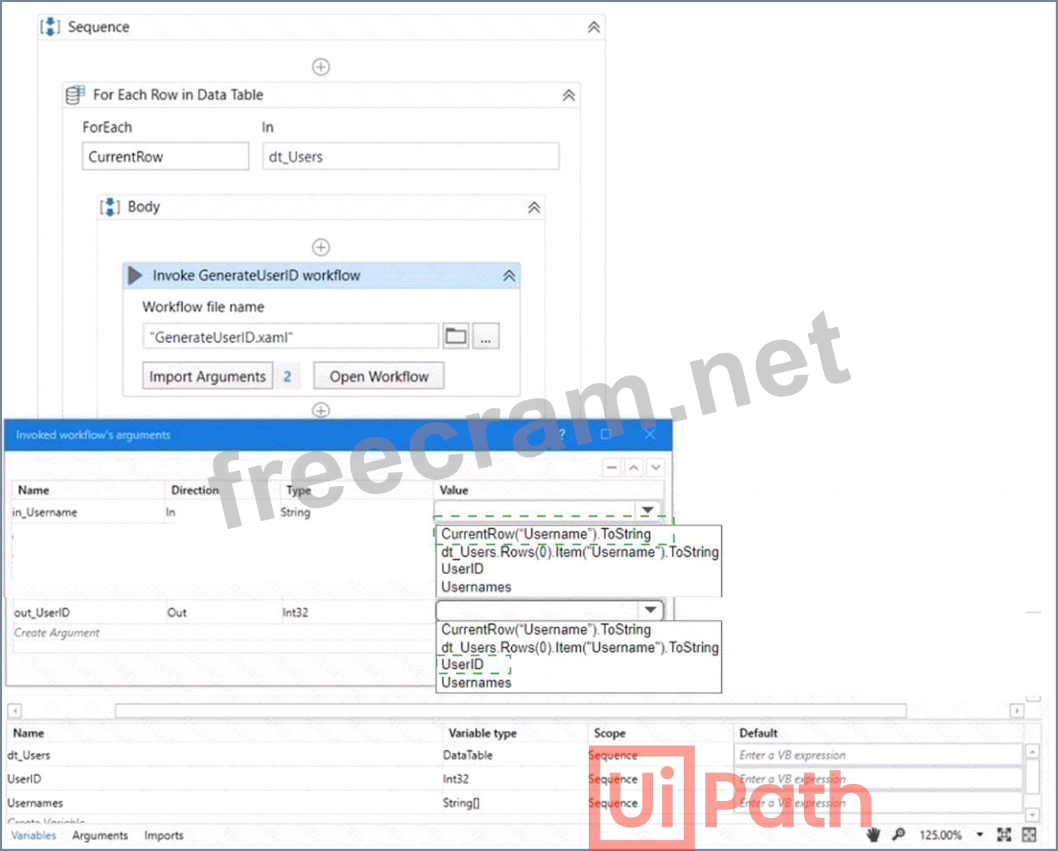 Question 95: A developer is reviewing an existing workflow in UiPath Stud...