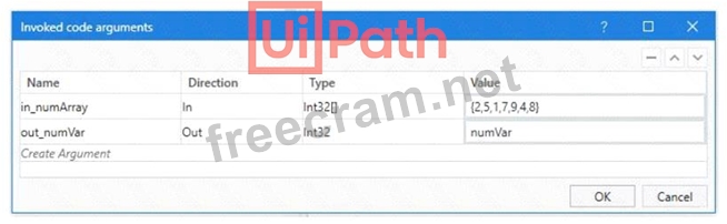 The code in the Invoke Code activity is looping through an array of integers and checking if the current value is greater than the previous value. If it is, the current value is stored in the output variable. Since the last value in the array is 9, this will be the final value of the output variable. (UiPath Studio - Invoke Code - UiPath Academy) References: Studio - Invoke Code - UiPath Documentation Portal UiPath Studio - Invoke Code - UiPath Academy