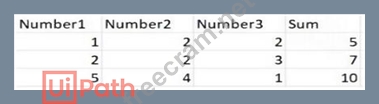 Consider testing a workflow that computes the sum of two numbers having the data driven test data from the Excel file below: Expanding the functionality of the workflow to compute the sum of three numbers, the data needs to be updated as well to accommodate the new scenario: What are steps to do that?