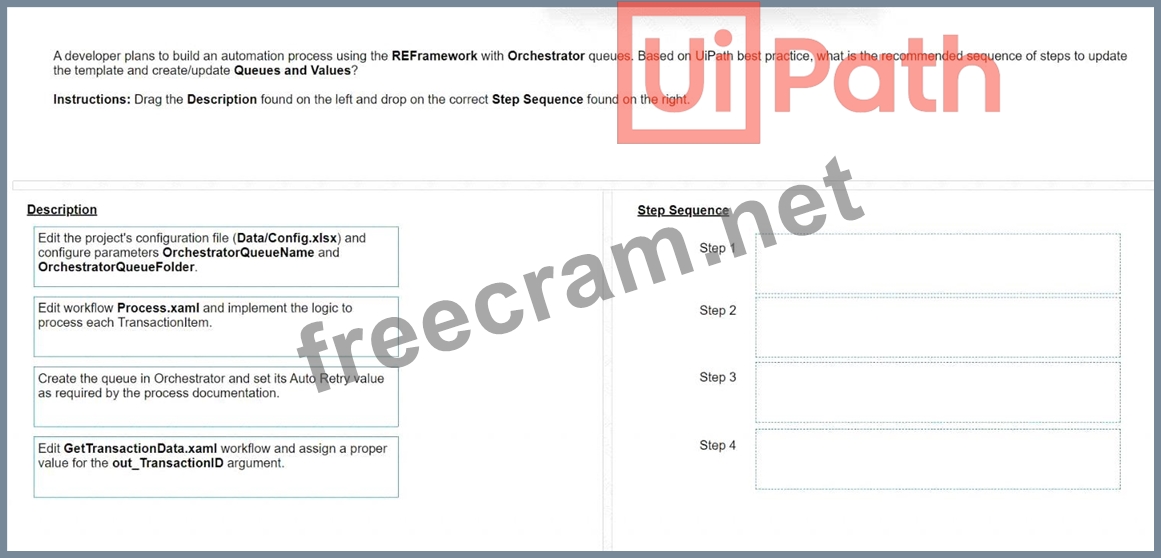 Question 6: A developer needs to use the REFramework in order to impleme...