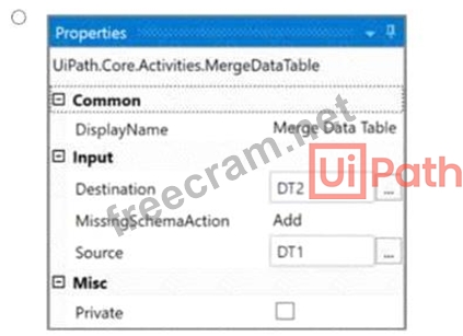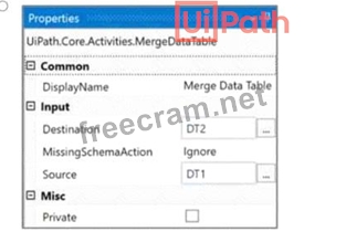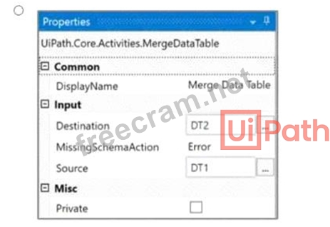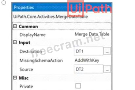 When developing a process, you were provided with two data tables, "DT1" and "DT2", as shown below: