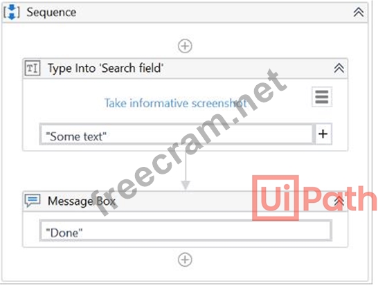 A developer configured the properties for a Type Into activity on an element inside a web page as shown in the following graphic. During runtime, the selector is invalid and does not match any element on the web page. What occurs during the execution of the sequence?