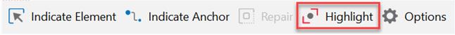 A developer is using UiExplorer to modify selectors. The "Highlight" button is present in UiExplorer. What is its functionality and when does this button appear?