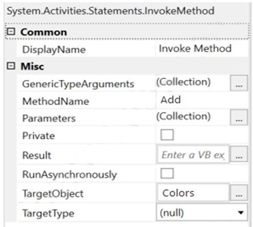A developer wants to add items to a list of strings using the Invoke Method activity. The list is declared as follows: