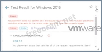 Exhibit. An administrator is testing a newly created Windows 2016 template in VMware Aria AutomationAssembler. While using the Test option from within the VMware Aria Automation template, the attached error appears. What is a possible cause for this error message?