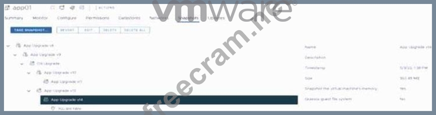 Refer to the exhibit. A cloud administrator is investigating a reported performance issue on a virtual machine (VM). The administrator observes low latency on the datastore but high latency within the VM. The administrator notes that it is a standard operating procedure to take a snapshot of the VM whe never there is an application or operating system upgrade on this VM. Based on the exhibit, which snapshot characteristic will result in performance degradation?