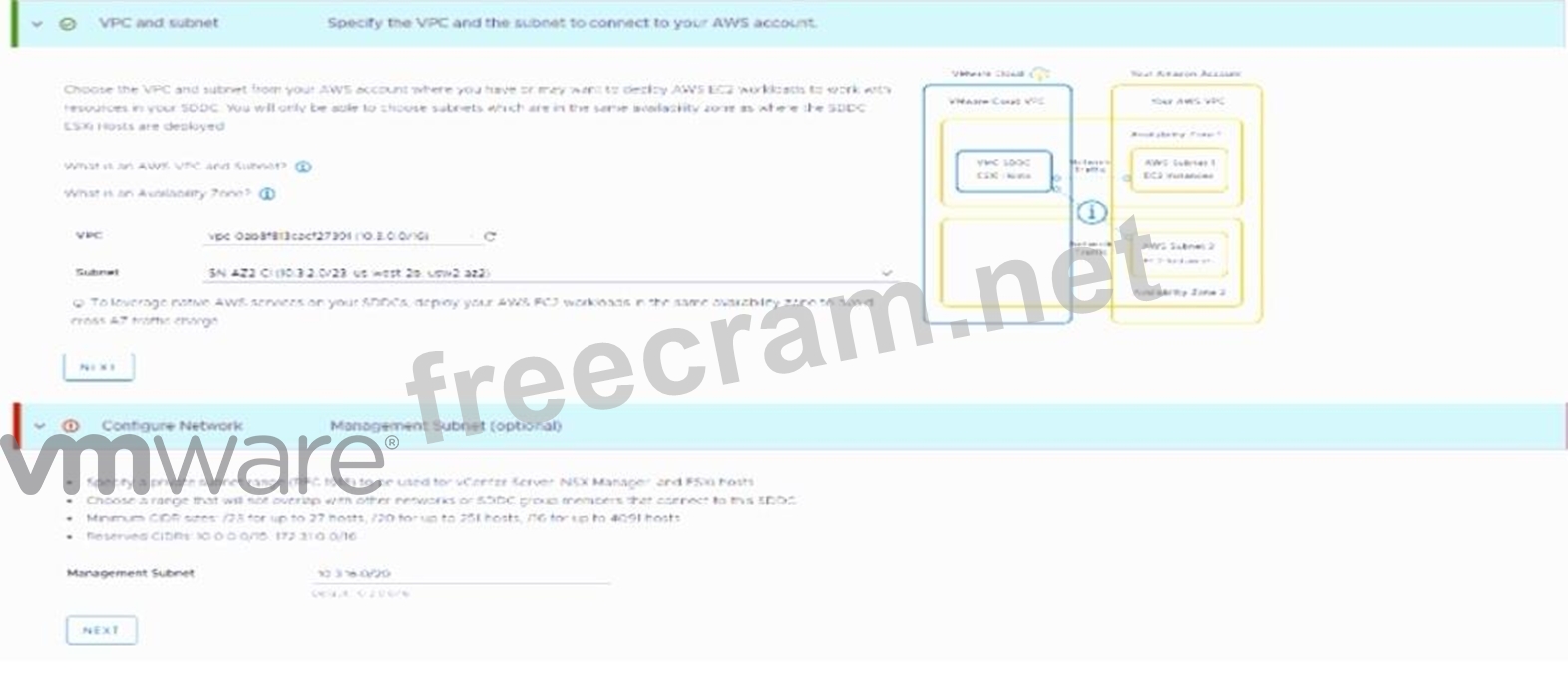 https://docs.aws.amazon.com/whitepapers/latest/sddc-deployment-and-best-practices/deploying-vmware-cloud-on-aws-sddc.htmlThis must be a RFC1918 private address space (10.0.0.0/8, 172.16.0.0/12, or 192.168.0.0/16) with CIDR block sizes of /16, /20, or /23. The management CIDR block cannot be changed after the SDDC is deployed. Choose a range of IP addresses that does not overlap with the AWS subnet you are connecting to. If you plan to connect the SDDC to an on-premises DC or another environment, the IP subnet must be unique within your enterprise network infrastructure. Choose a CIDR that will give you future scalability.