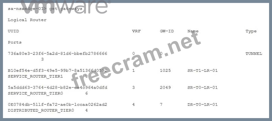 BGP will be configured on the T0 SR. Connect to the VRF for the T0 SR and run get bgp neighbor once connected to it. https://docs.vmware.com/en/VMware-Validated-Design/5.1/sddc-deployment-of-vmware-nsx-t- workload-domains-with-multiple-availability-zones/GUID-8BD4228A-75C6-4C60-80B4- 538D4297E11A.html