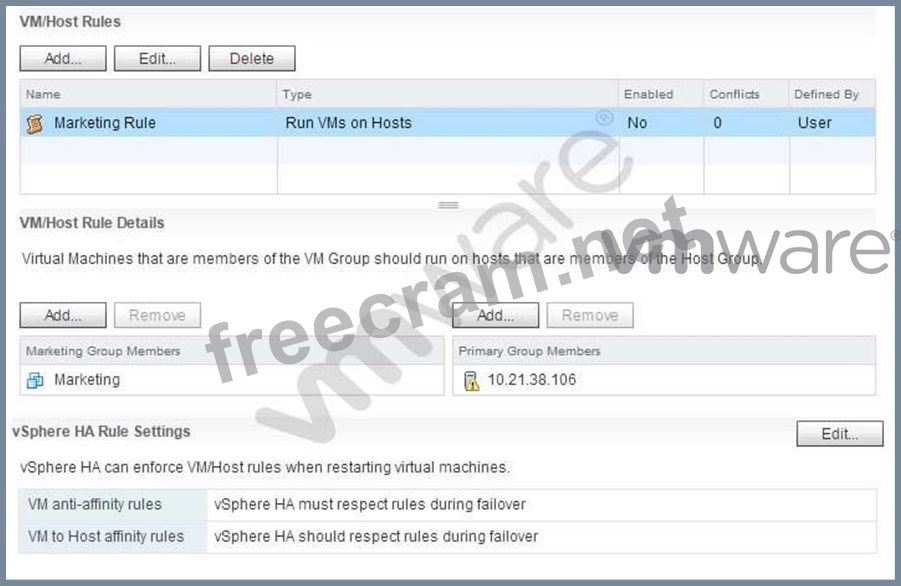 Question 77: A vSphere 6 High Availability cluster has been configured wi...