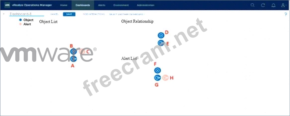 A customer is in the process of creating a Custom Dashboard and has added the following widgets: * Object List * Object Relationship * Alert List The customer's requirements are given below: Whenever any object is selected in Object List widget, then Object Relationship widget should show the relationship map of this selected object. The Alert List widget should only show this selected object Active Alerts. Refer to the exhibit: Which Points in these widgets should be connected to satisfy this requirement?