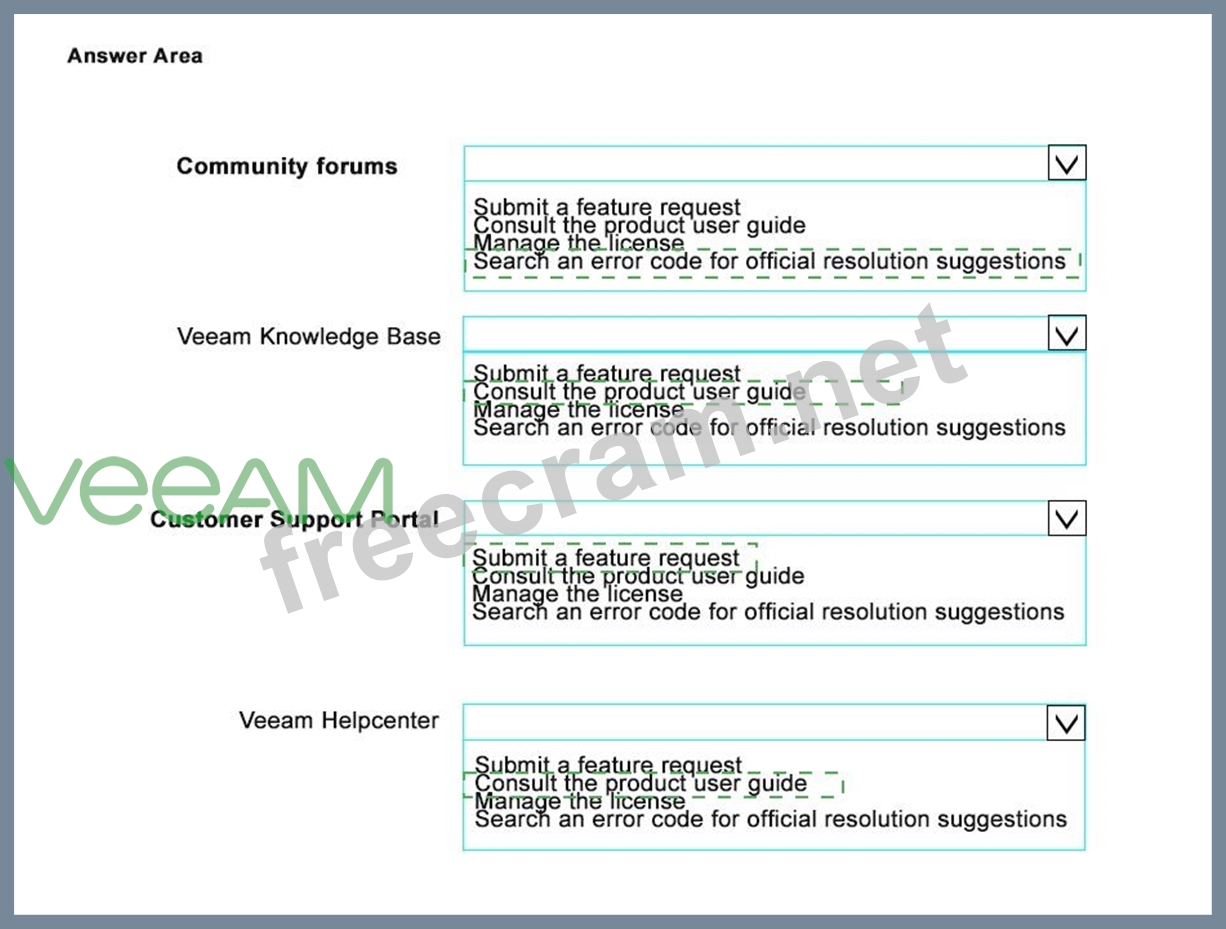 Question 17: HOTSPOT Match the following Veeam resource with the correspo...