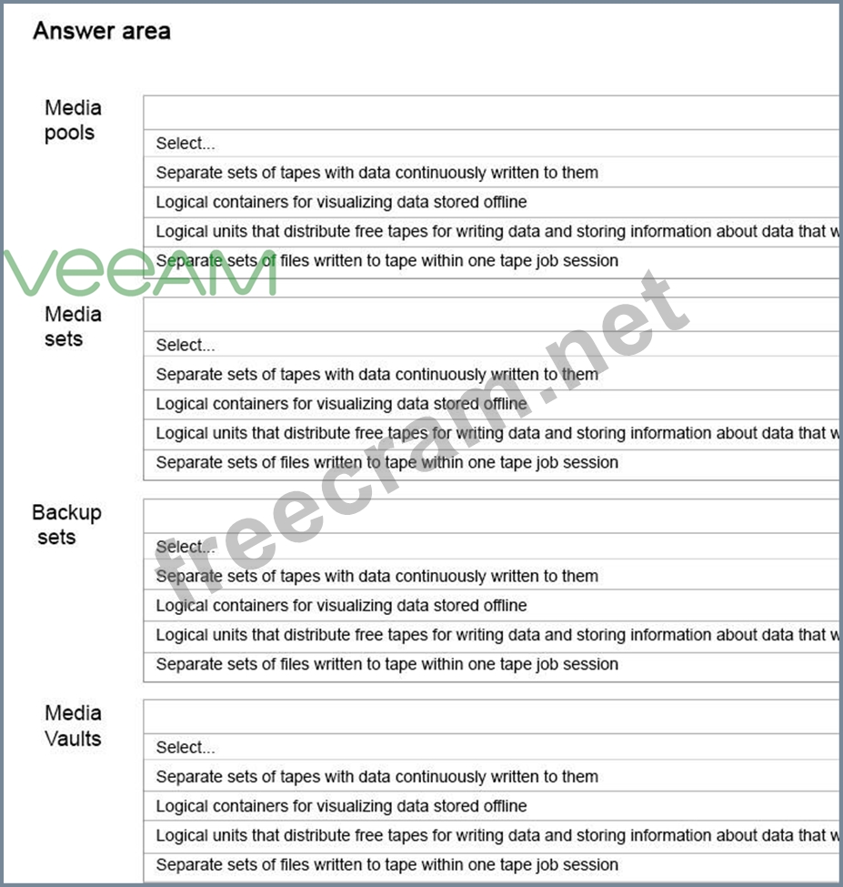 Question 64: HOTSPOT Match each of the following entities that Veeam Back...