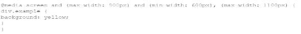 Given the following HTML statement: And the following style: Which line of the changes the background color of the <div> tag when the width is between 600 pixels and 900 pixels or more than 1, 100 pixels?