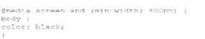 Given the following CSS statement: Which code segment changes the font color when the viewport is 800 pixels wide or wider?