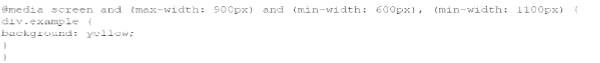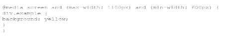 Given the following HTML statement: And the following style: Which line of the changes the background color of the <div> tag when the width is between 600 pixels and 900 pixels or more than 1, 100 pixels?