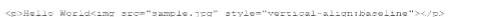 The CSS propertyvertical-align: baselinealigns the baseline of the element with the baseline of its parent. For inline elements like images, the baseline alignment means that the bottom of the image aligns with the bottom of the text. * CSSvertical-alignProperty: * Baseline Alignment: Aligns the baseline of the element with the baseline of its parent. * Example: <p>Hello World<img src="sample.jpg" style="vertical-align:baseline"></p> * Analysis: * The<img>element withvertical-align: baselinewill align its bottom with the bottom of the surrounding text "Hello World". : MDN Web Docs -vertical-align W3C CSS Inline Layout Module Level 3
