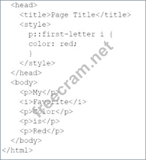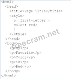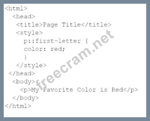 Use the given text to answer the following question: My Favorite Color is Red Which code can be used to style the first letter of each word in red font?
